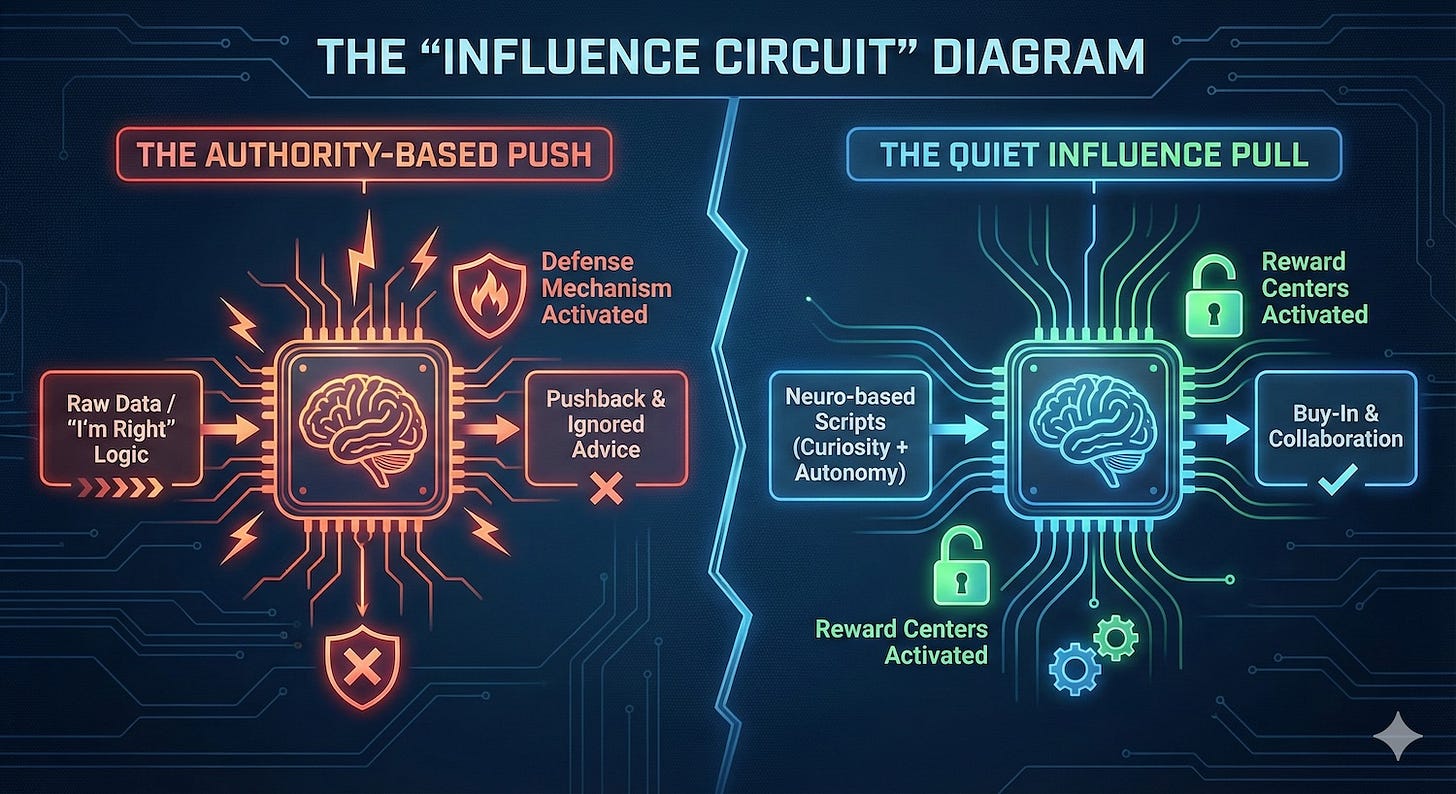 In my recently published book, Quiet Influence: A Neuroscience-Based Field Guide for Technical Professionals to Get Buy-In Without the Title, I explore the science of why logic alone rarely changes minds. The short version? When we challenge someone’s idea, their brain processes it as a threat to their status or autonomy. They don’t hear your data; they feel your attack.